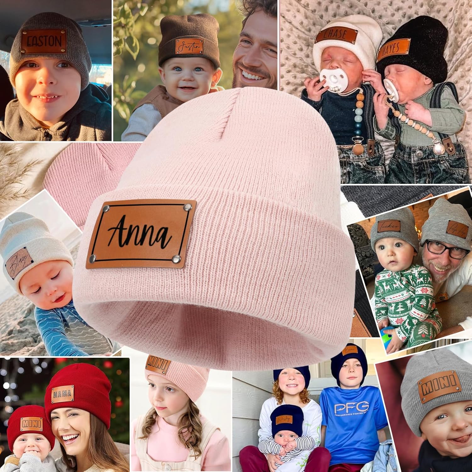 13 reviews for Custom Toddler Baby Beanies, Mama Mini Matching Hats, Leather Patch Baby Knit Hats, Winter Beanies for Infant, Kids Adults