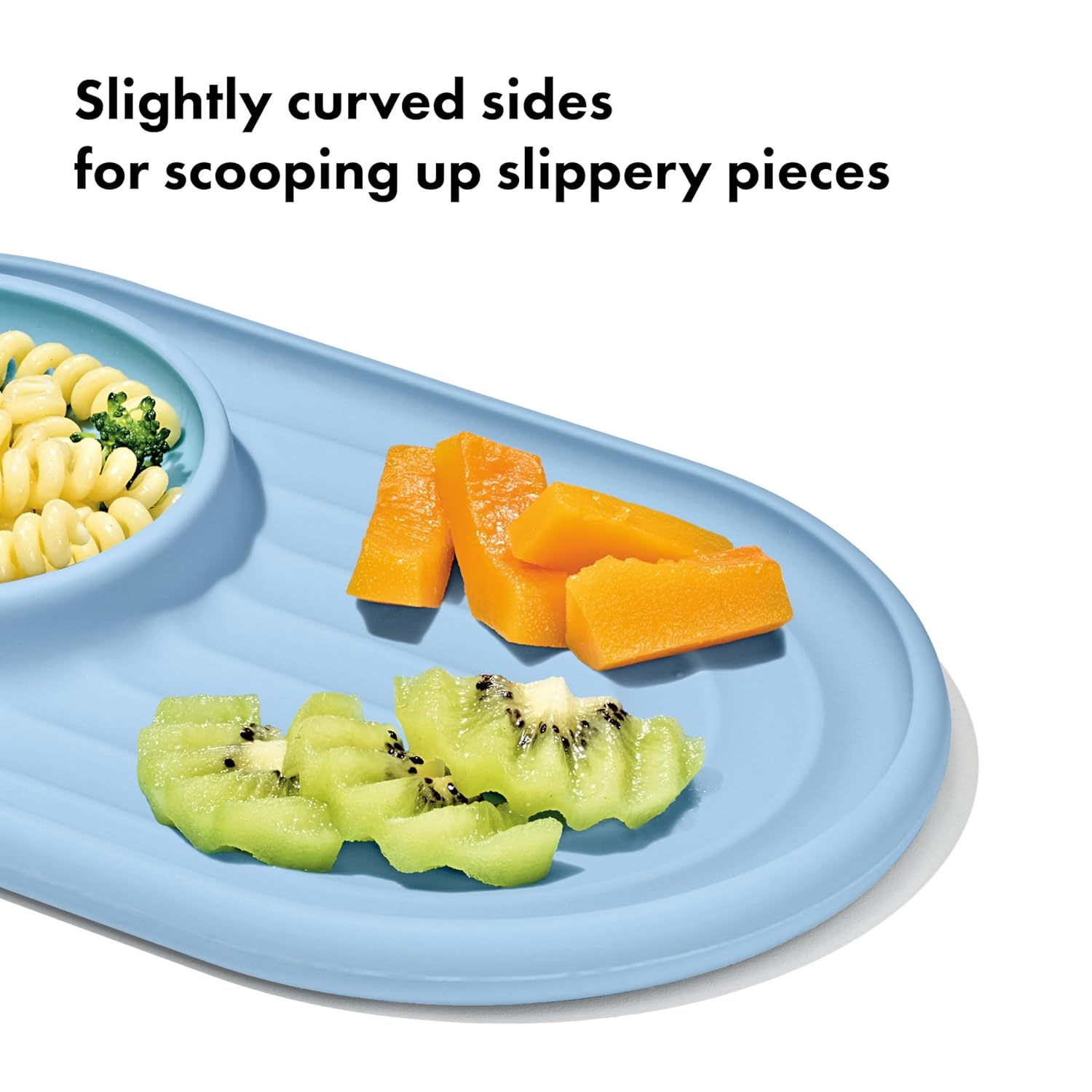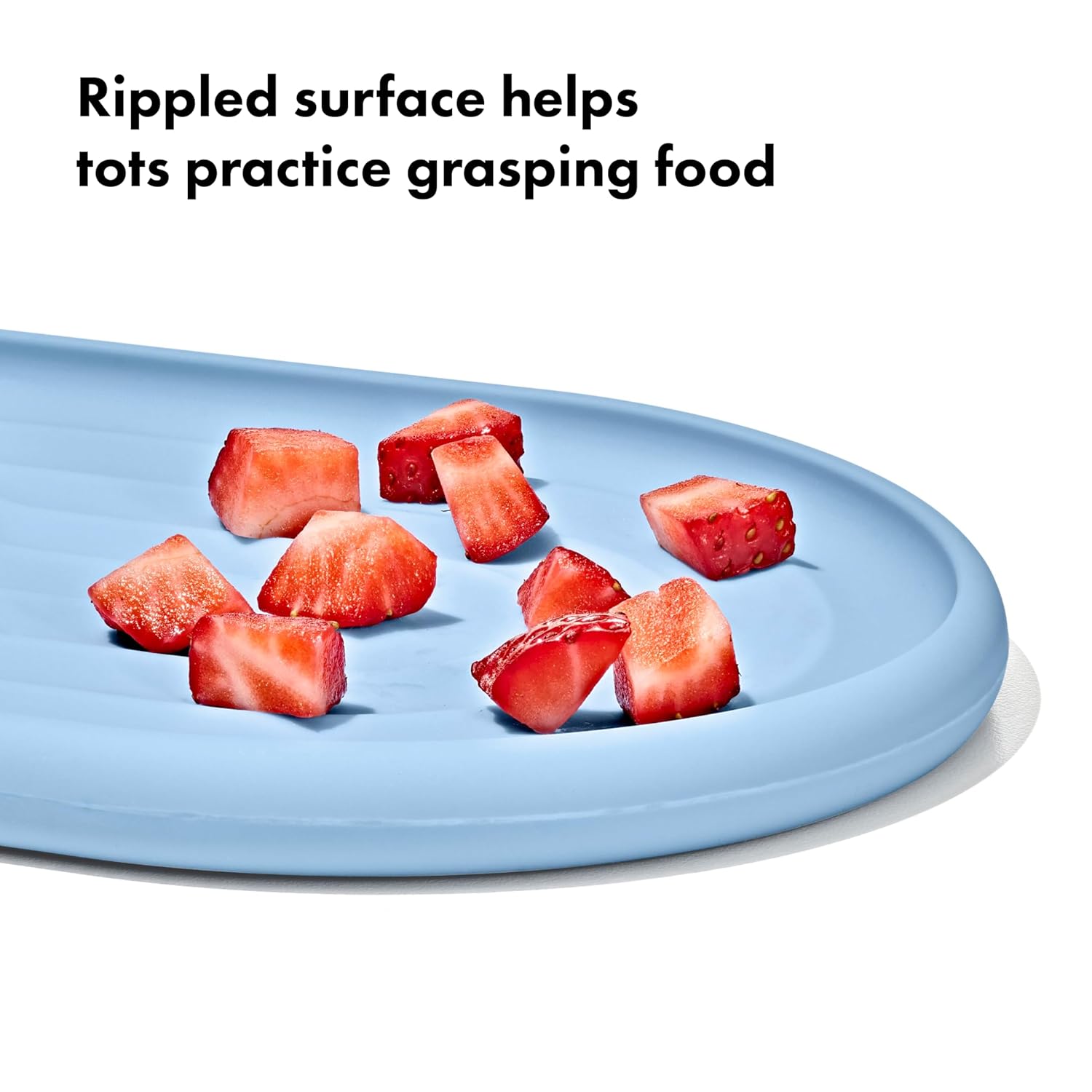 The OXO Tot Textured Suction Plate is essential for your little one’s baby led weaning supplies needs. Whether you’re looking to expand upon your home’s selection of toddler plates and bowls or putting together a travel utensils kit, it’s a must-have in baby essentials and baby utensils. At OXO Tot, we work hard to support baby led weaning and provide the best in baby led weaning essentials— and this plate set was a no-brainer. We hope it becomes your go-to baby feeding mat and only silicone feeding mat. It’s a key part of your baby feeding essentials tool kit. The baby feeding set is personal as it was designed with little hands and unpredictable appetites in mind. Created to help prevent spills, the plate features raised walls to keep food contained with a slight lip on baby bowls and baby plates. The texture on the mat prevents food from sticking to the surface, and the low-profile design makes for easy access for your little one. Look no further for baby plates with suctions as you discover our baby eating essentials