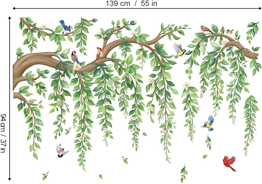 13 reviews for wondever Large Tree Branch Hanging Vine Wall Stickers Green Leaf Flower Birds Peel and Stick Wall Art Decals for Living Room Bedroom TV Wall